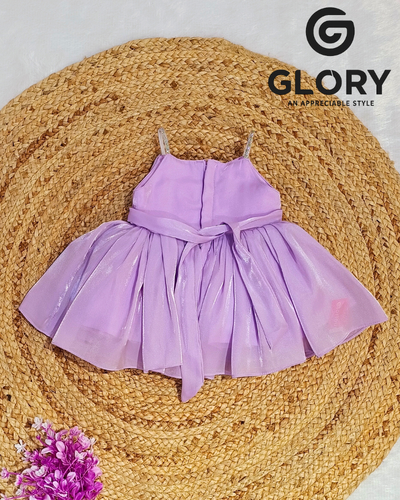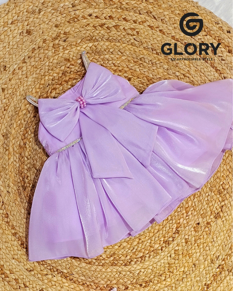 This stunning lavender party wear frock is designed to give your little angel a stylish and princess-like look. The dress features a large, elegant bow in the front highlighted with cute pink pearl detailing, adding a touch of charm and luxury.