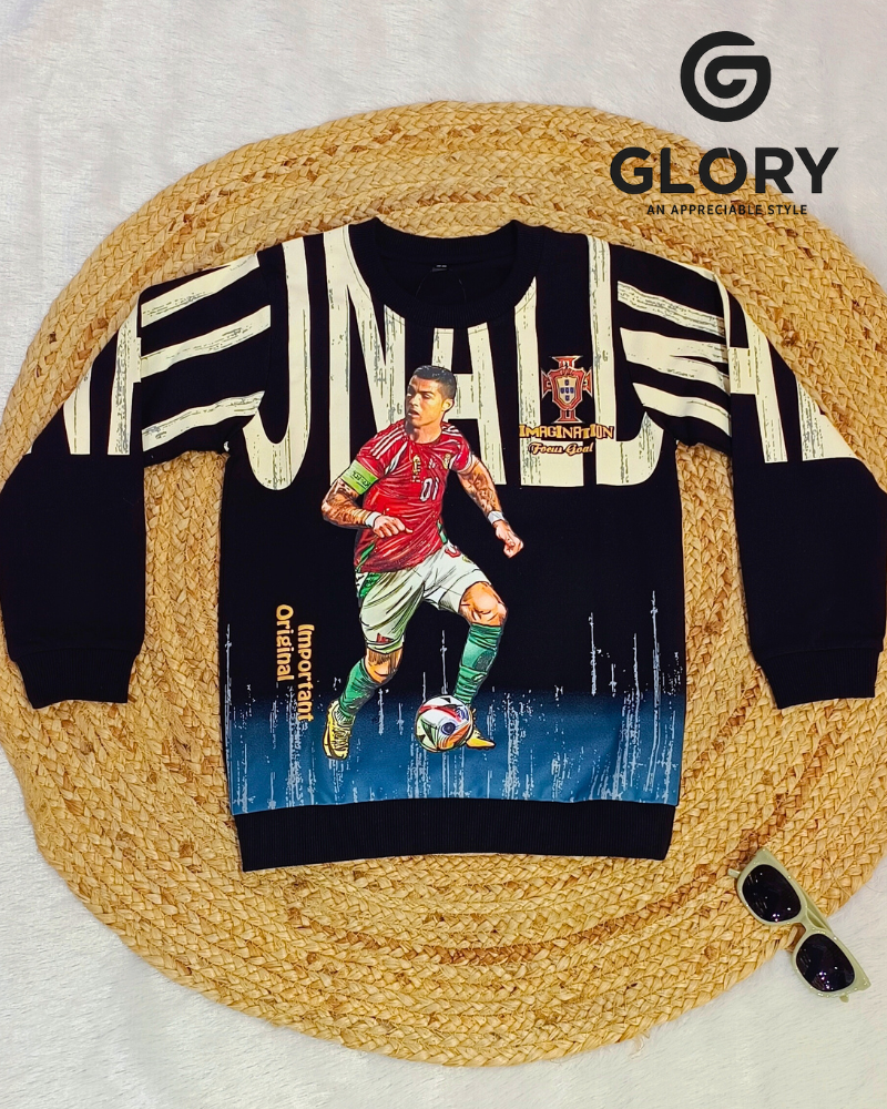 This stylish football-themed boys’ sweatshirt is designed for young sports fans who love energetic and trendy outfits. The striking front graphic showcases a dynamic illustrated football player, giving the sweatshirt a bold and sporty look that instantly stands out.