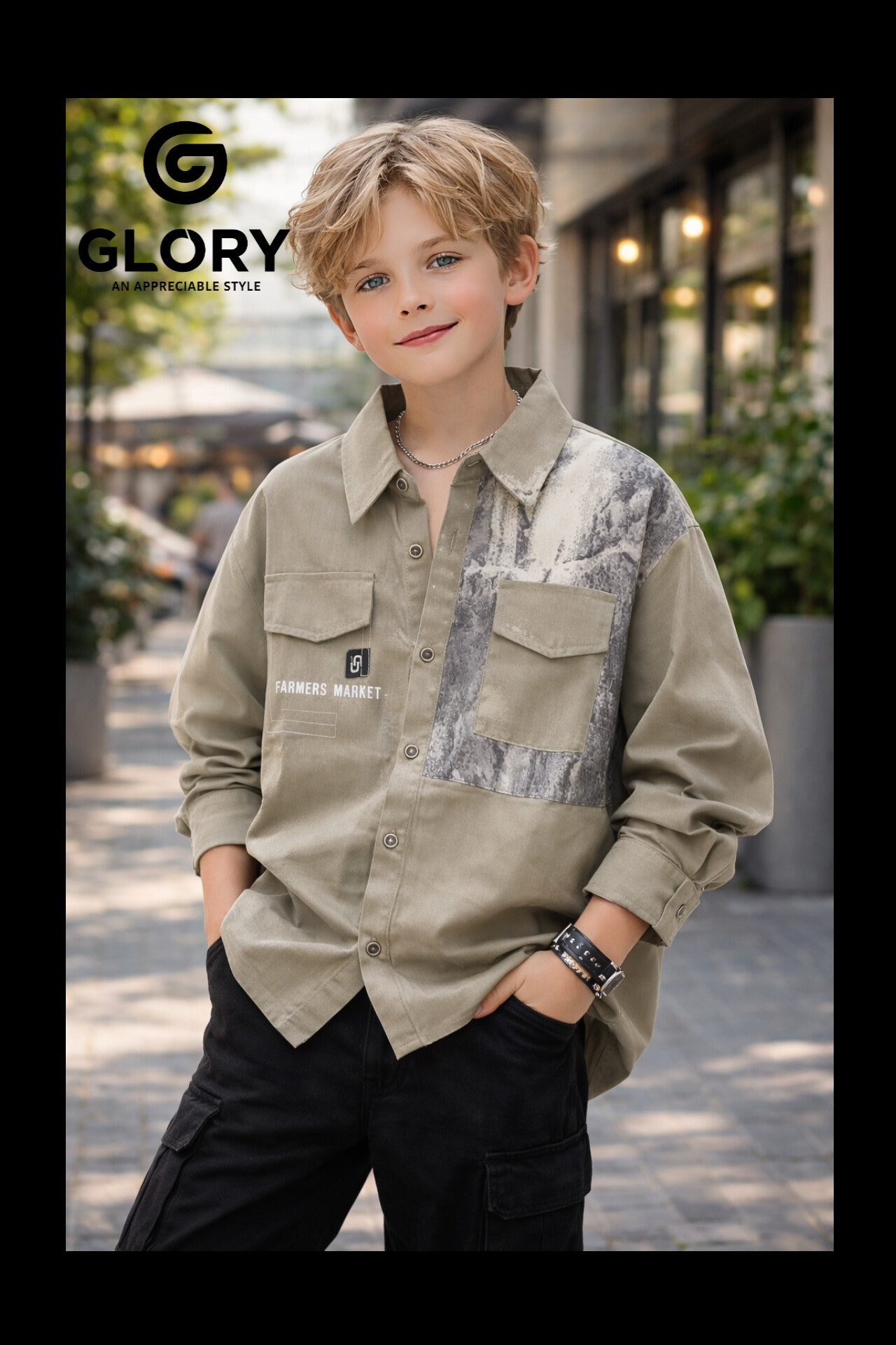 Give your child a fresh and fashionable look with this boys M-green color block casual shirt, designed with a stylish printed panel for a modern touch. The rich green shade combined with contrast detailing creates a smart, trendy appearance perfect for everyday wear.