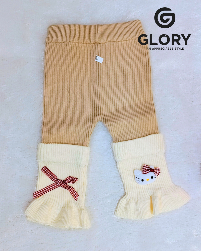 Paired with soft, stretchable ribbed leggings, the outfit ensures full comfort and flexibility. The leggings come with frilled ankle cuffs decorated with bow accents and a cute character patch, adding a playful and stylish touch to the winter look.