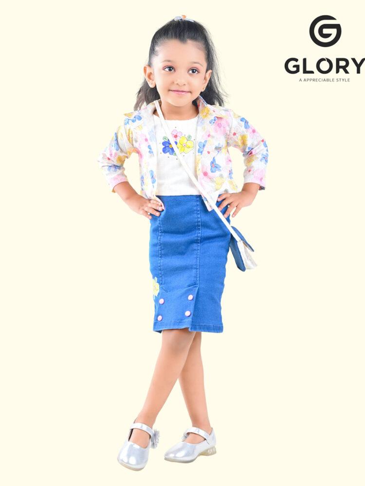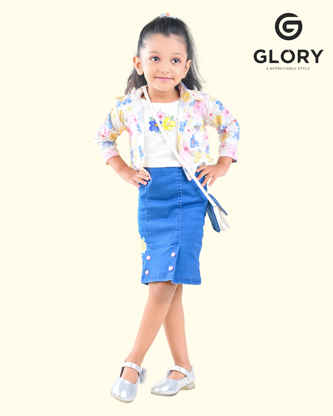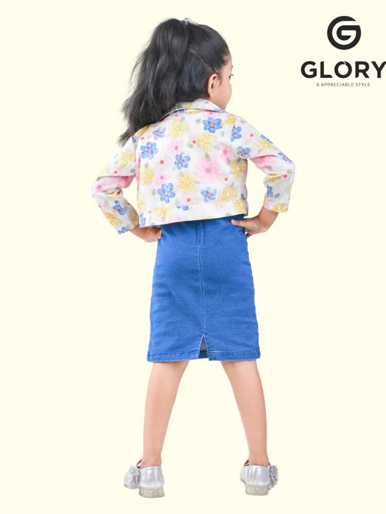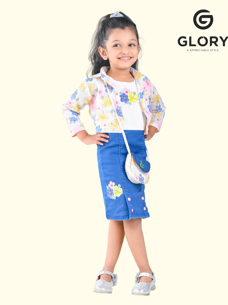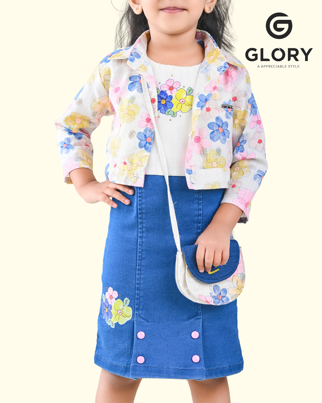 Style | Girls Denim Dresses With Floral Print Jacket & Purse |