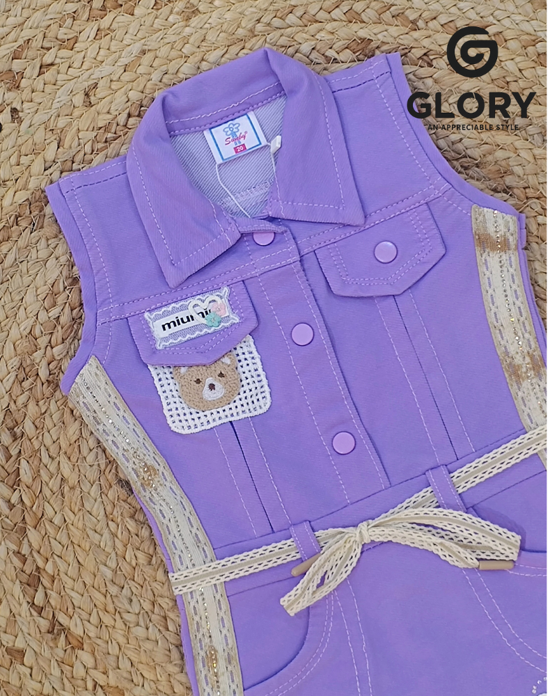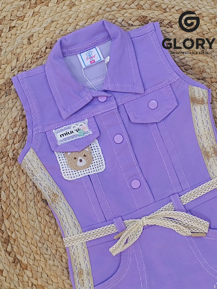 Style | Lavender Sleeveless One piece With Cute Teddy Patch |