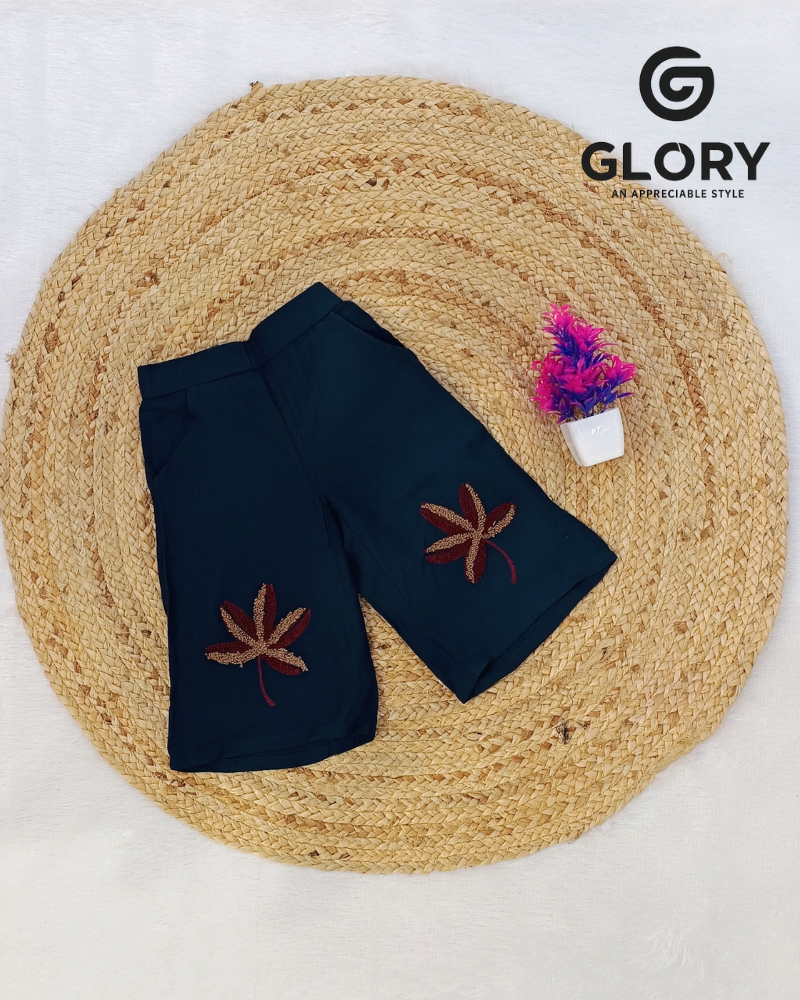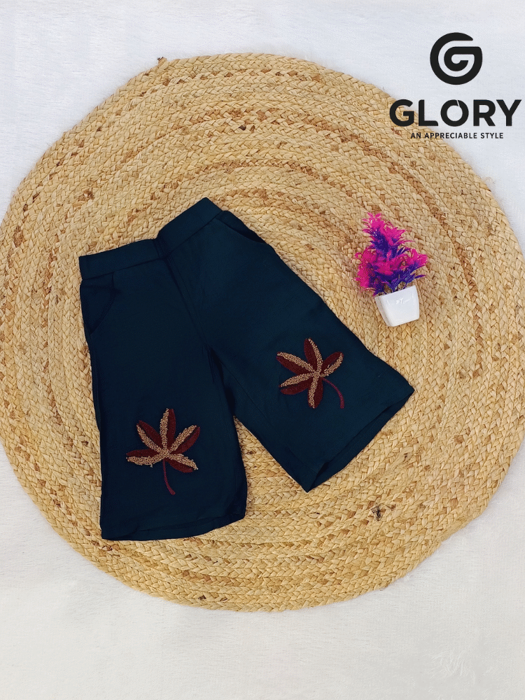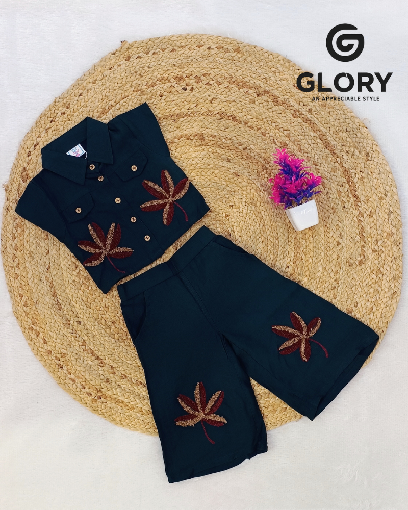 Style | Rama Green Cord Set With Embroidered Leaf Motif Design Top:- Cap Sleeves Bottom:- Palazzo |