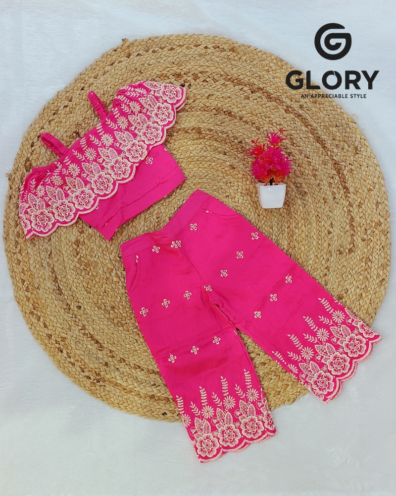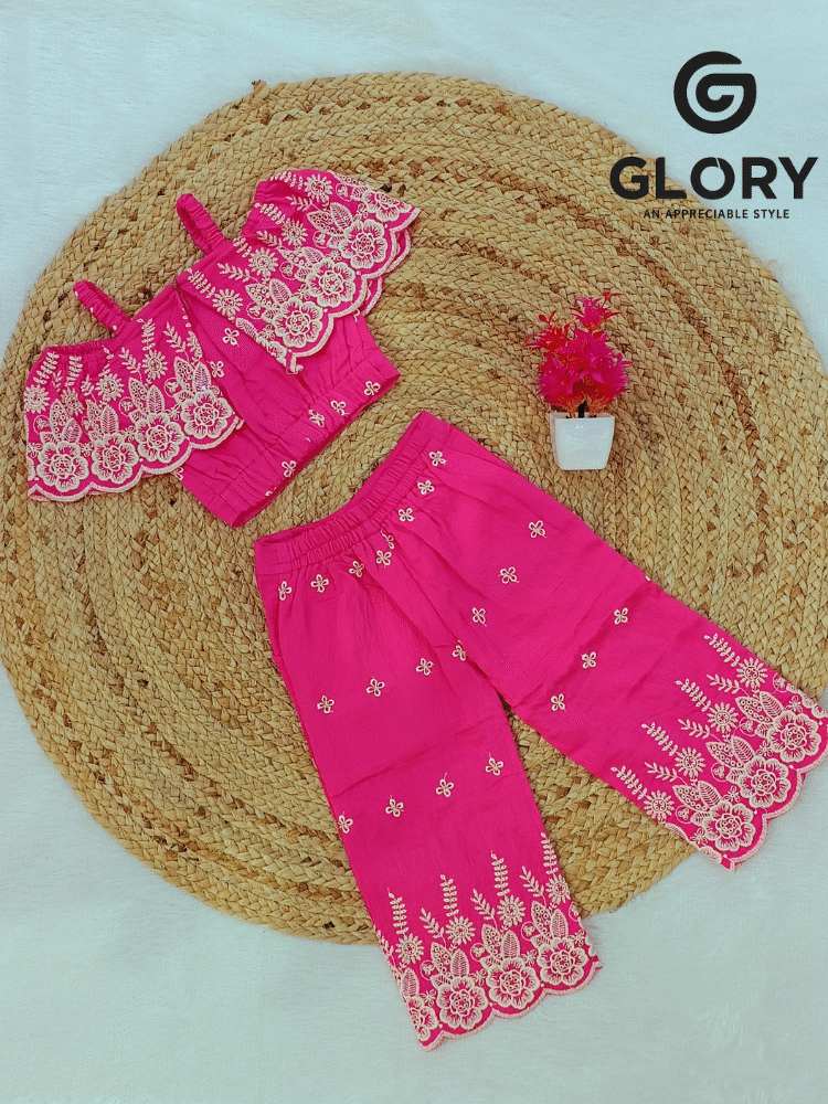 Style | Royal Pink Cord Set With Off Shoulder Crop Top & Palazzo |