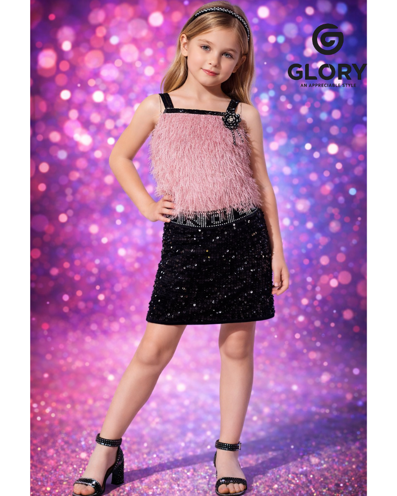Make every celebration sparkle with this stunning girls sequin skirt and fancy top party wear set. Designed to give a glamorous look, this outfit features a beautifully shimmering sequin skirt paired with a stylish fancy top, perfect for special occasions.
