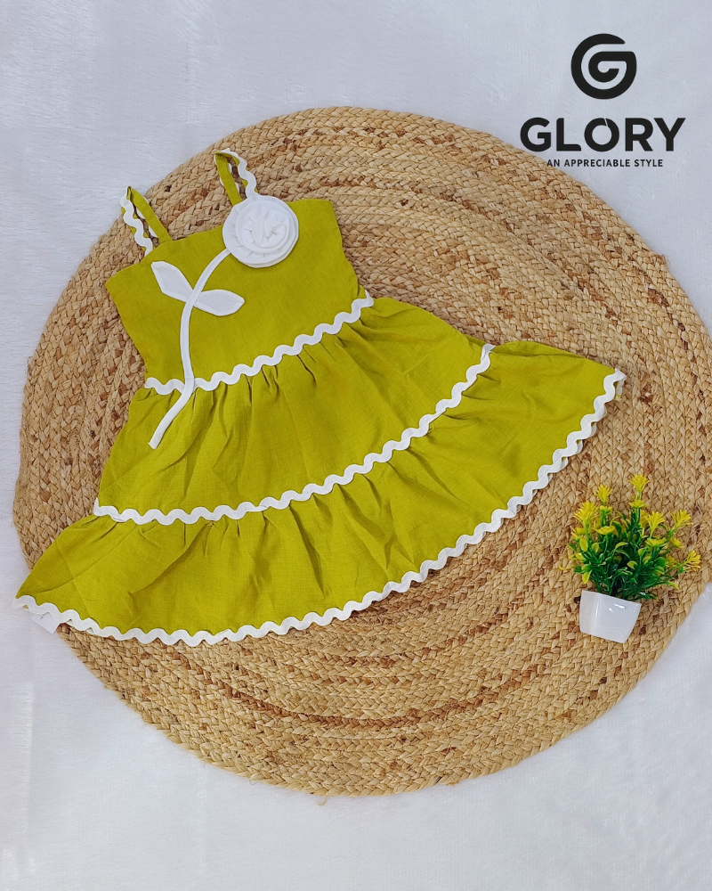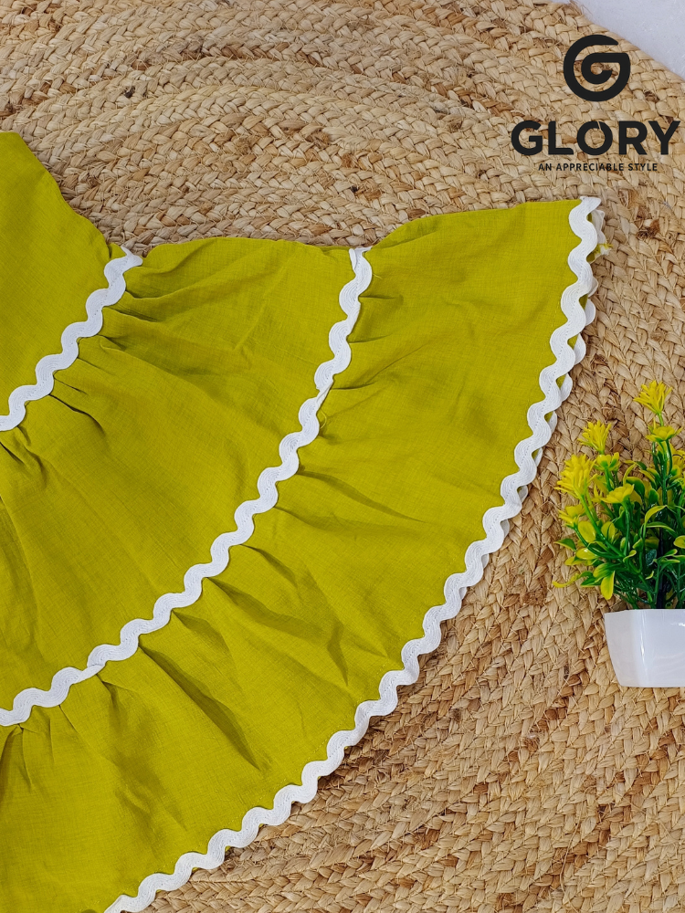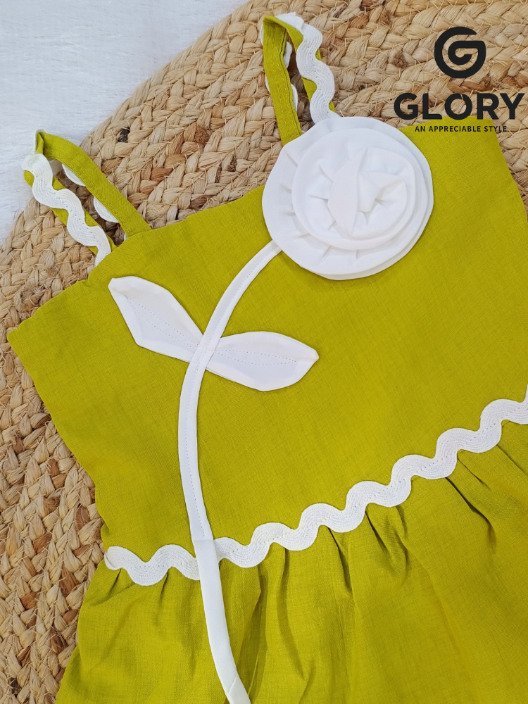 Style | Girls Solid Lime Color Middy With Flower Patch |