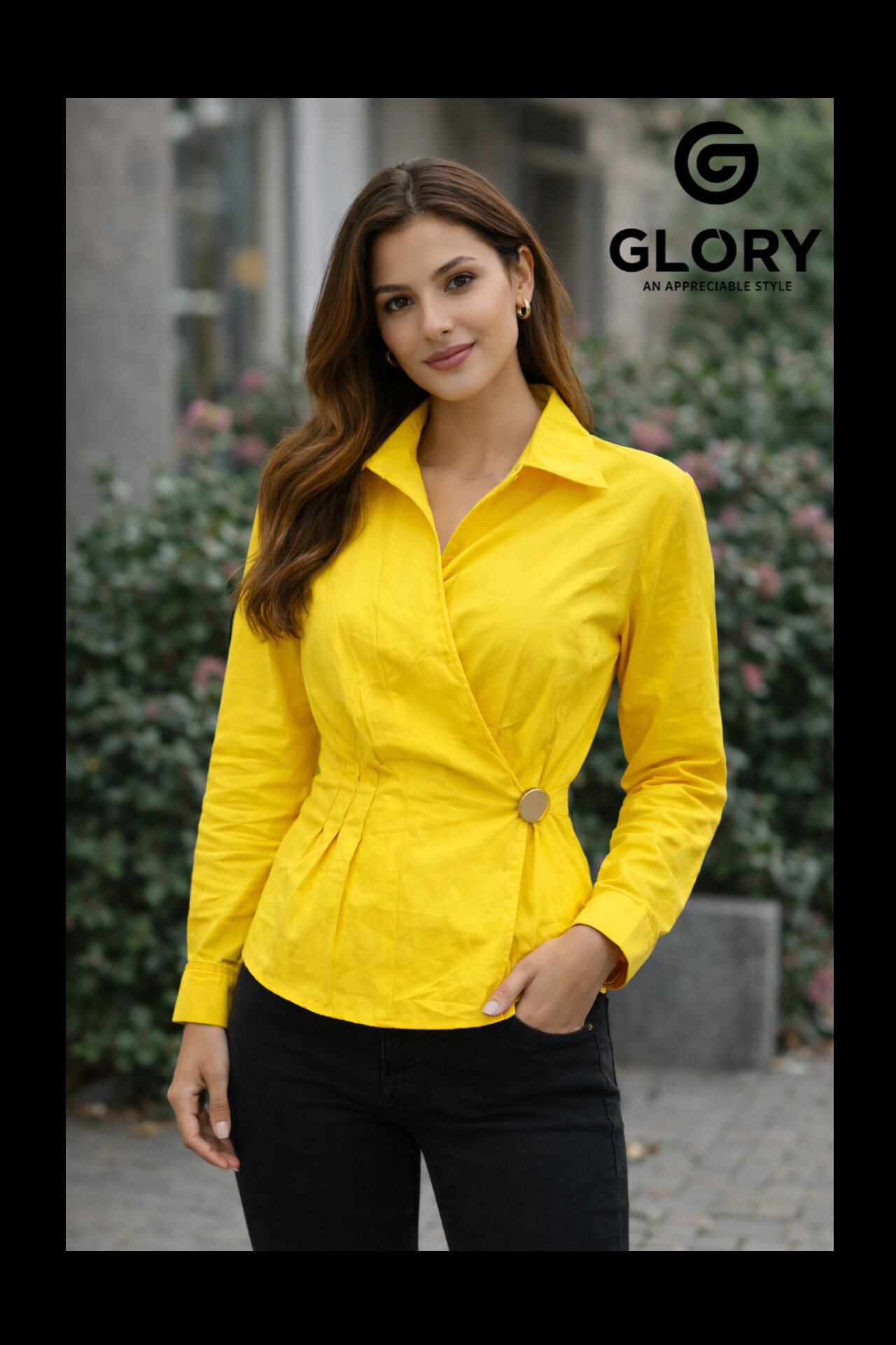 Add a fresh burst of color to your wardrobe with this GLORY Women’s Bright Yellow Wrap Style Top, designed to bring effortless elegance and modern charm to your everyday look. Crafted with a flattering wrap-style silhouette, this top beautifully enhances your shape while offering all-day comfort.