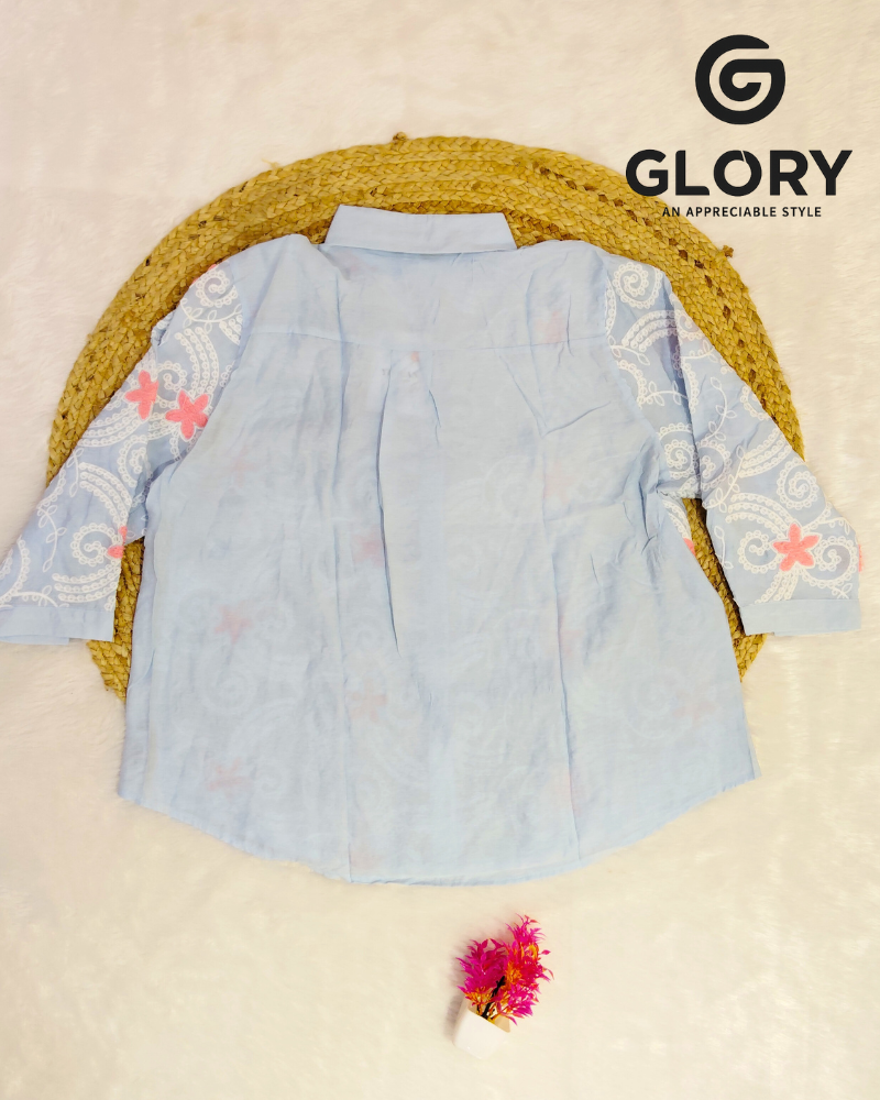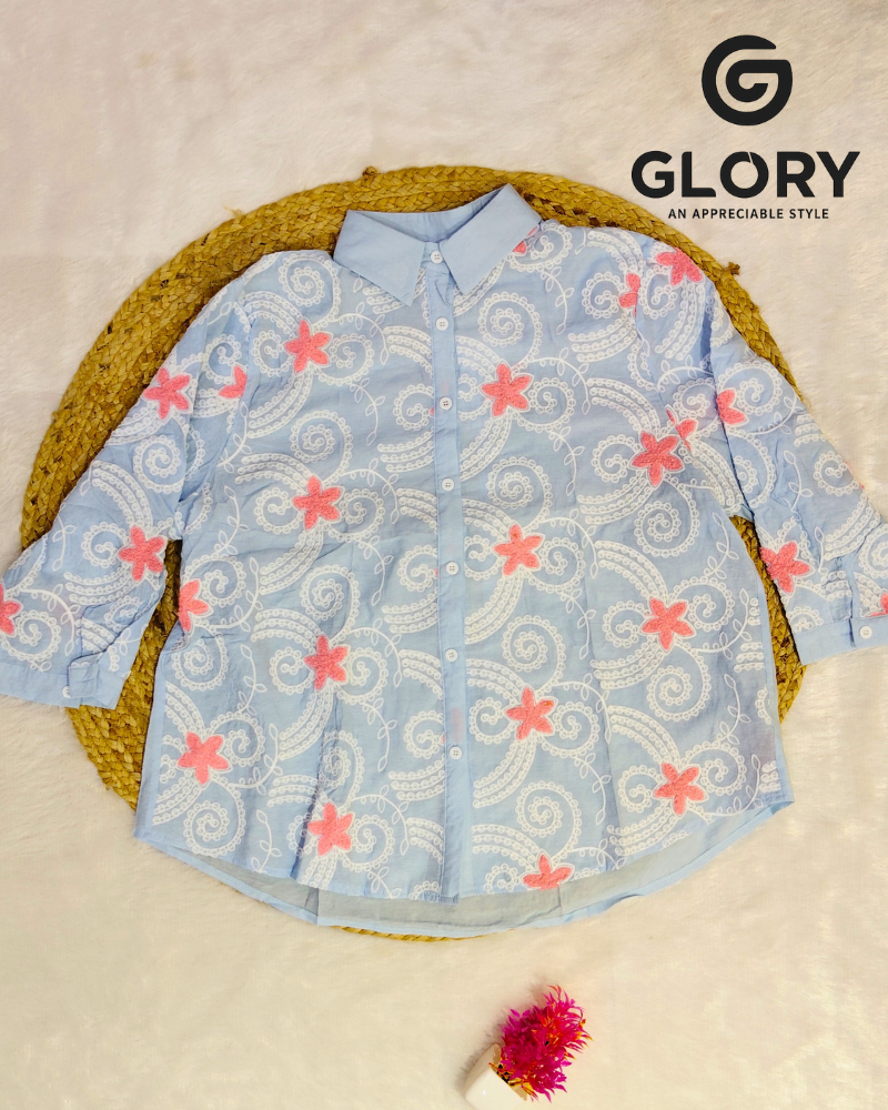 Upgrade your everyday fashion with this elegant Womenโs Sky Blue Embroidered Shirt, beautifully detailed with all-over white swirl thread work and soft pink floral embroidery. The soothing pastel base combined with intricate embroidery creates a classy yet fresh look, perfect for both casual and semi-formal styling.