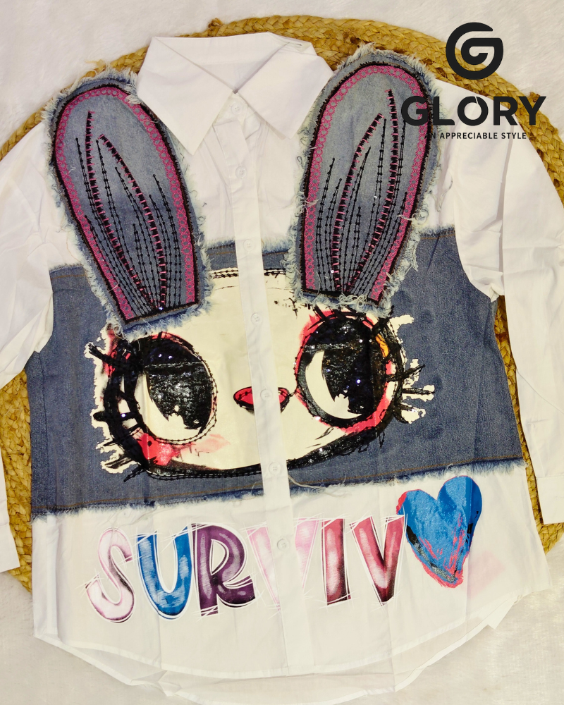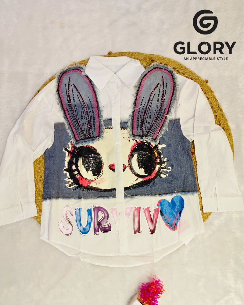Add freshness and creativity to your outfit with this Womenโs White Funky Printed Shirt. Designed with an eye-catching denim patch bunny graphic, artistic prints, and modern styling, this shirt gives a playful yet fashionable look. The clean white base beautifully highlights the bold artwork, making it stand out effortlessly.