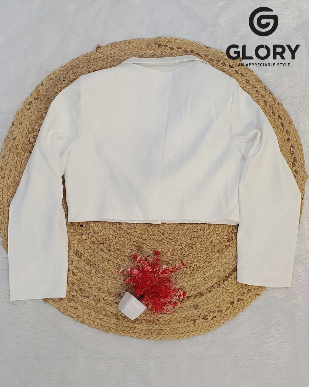 Add a touch of luxury to your wardrobe with this Women White Premium Cropped Blazer, beautifully crafted for a classy and modern look. The highlight of this blazer is the stunning designer bead-work flower appliqué on the shoulder, giving it a high-fashion, statement-making appearance.
