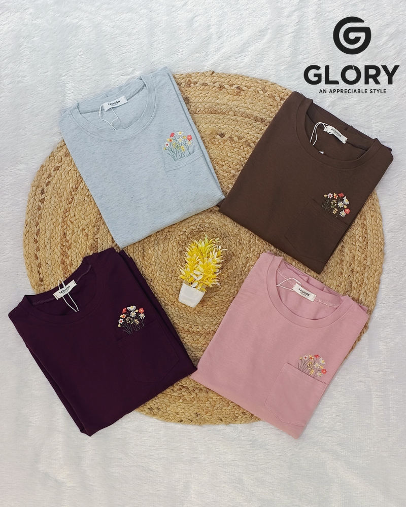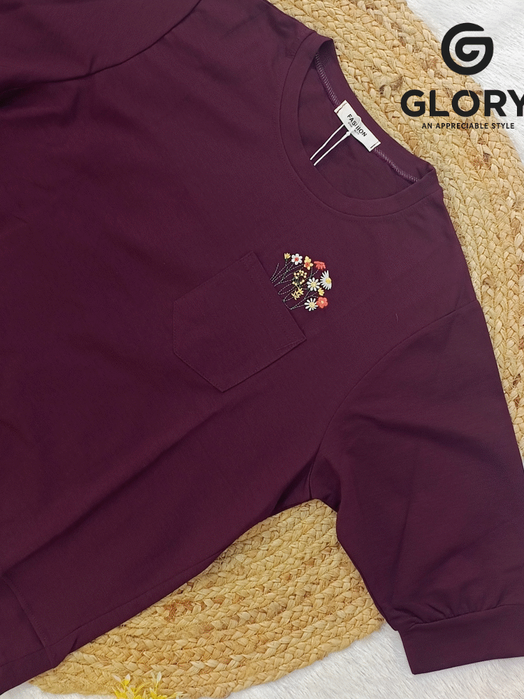 Style | Fancy T-shirt With Minimal Floral Thread Work Pocket |