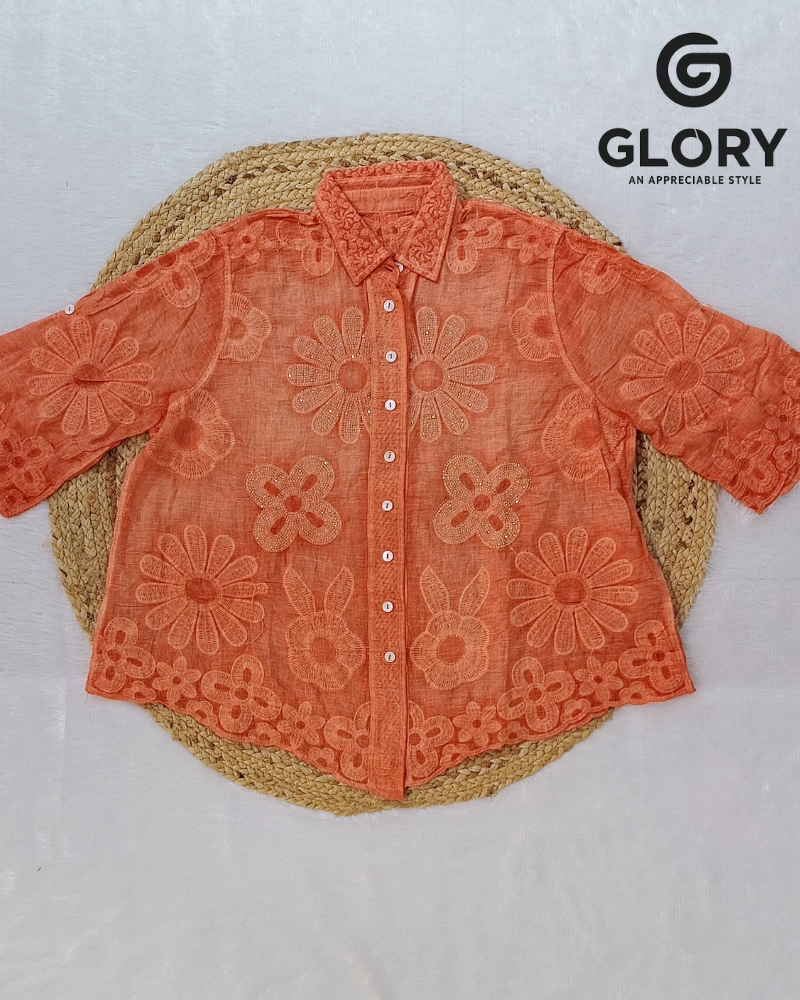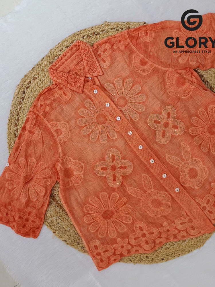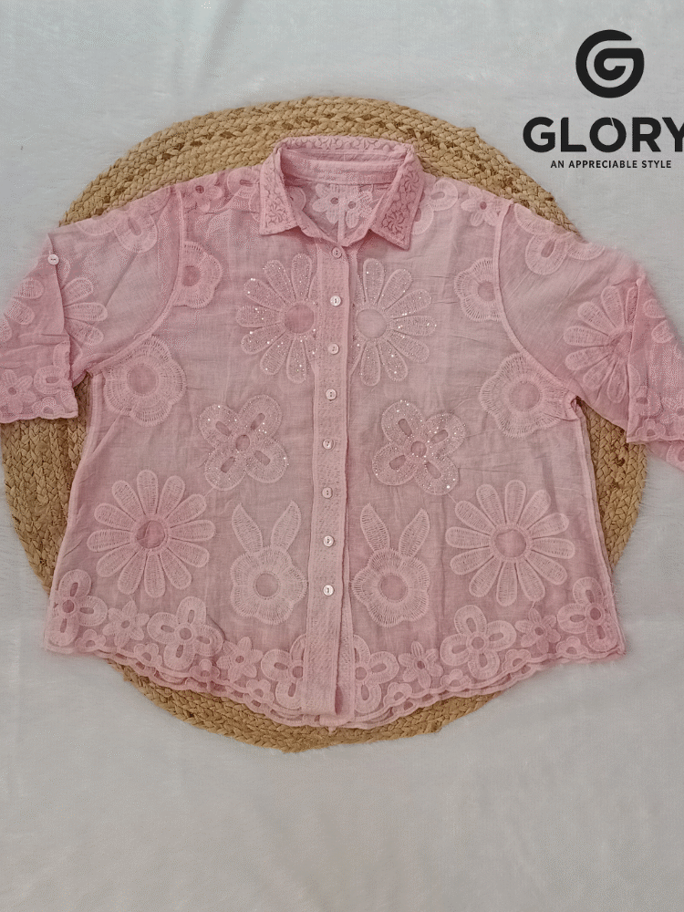 Style Fancy Top With Glittery Floral Thread Work Pattern