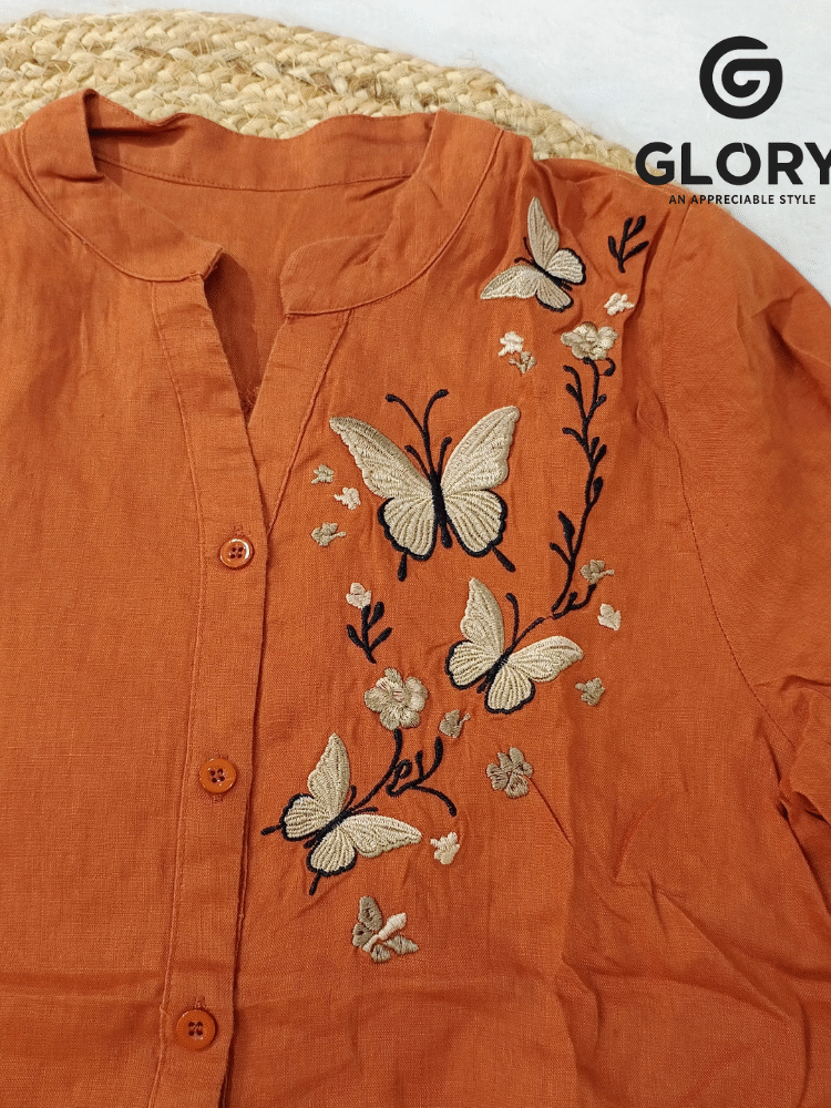 Style | Fancy Top With Golden Butterfly Patch & Thread Work |