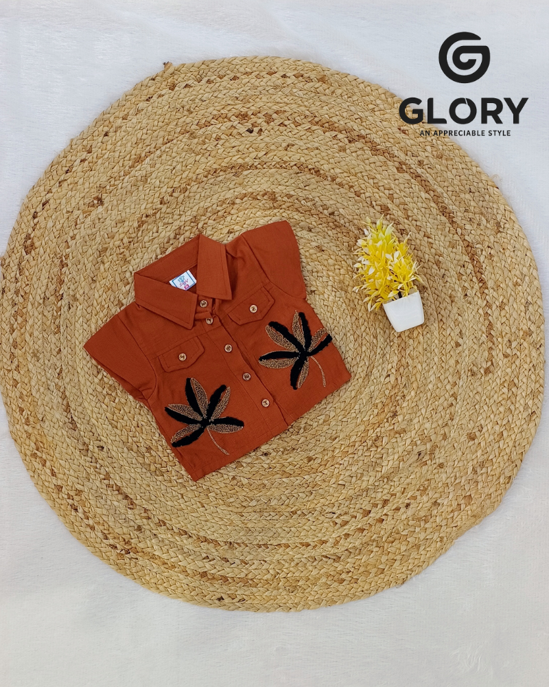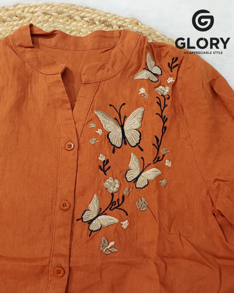 Women’s Fancy Top With Golden Butterfly Patch & Thread Work