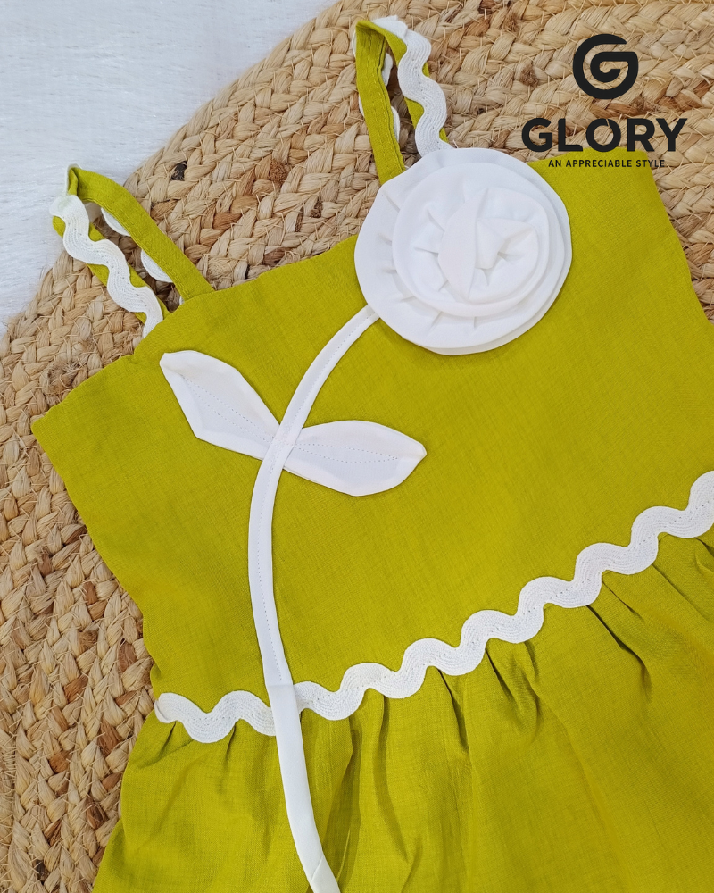Girls Solid Lime Color Middy With Flower Patch