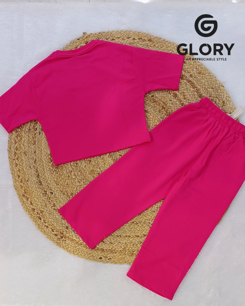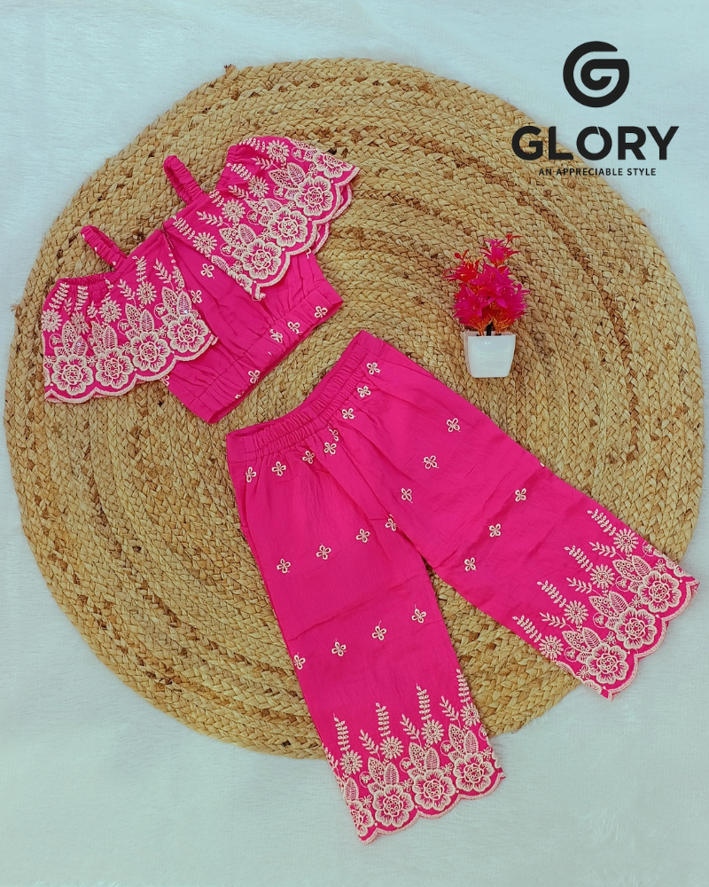 • Girls Soft Rose Pink Cord Set With Elegant Sequence Work Top