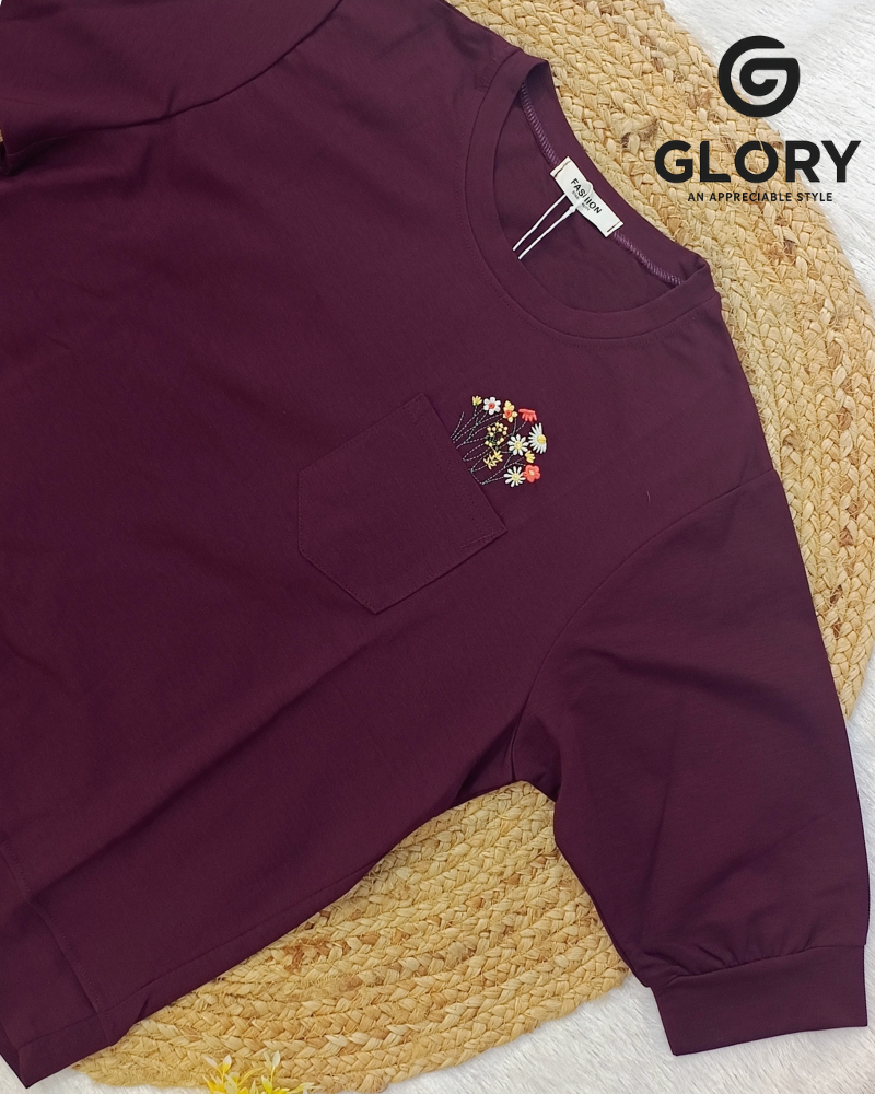 Women’s Fancy T-shirt With Minimal Floral Thread Work Pocket