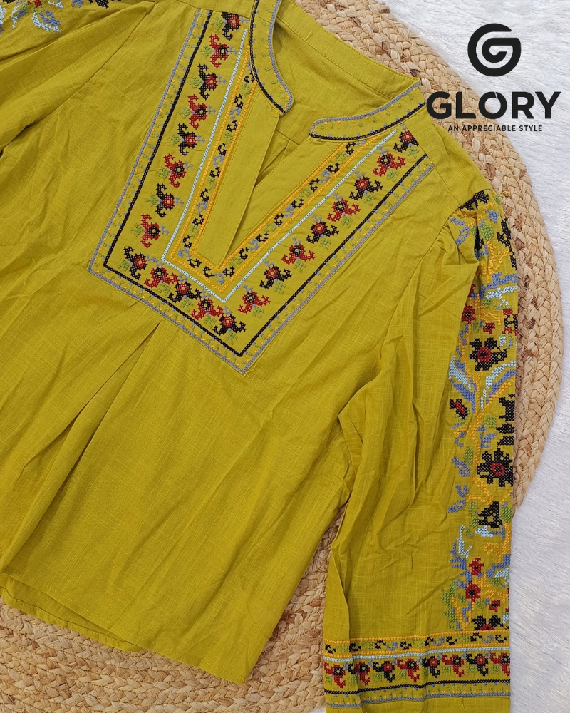 Women’s Linen Top With Fancy Floral Embroidery Work