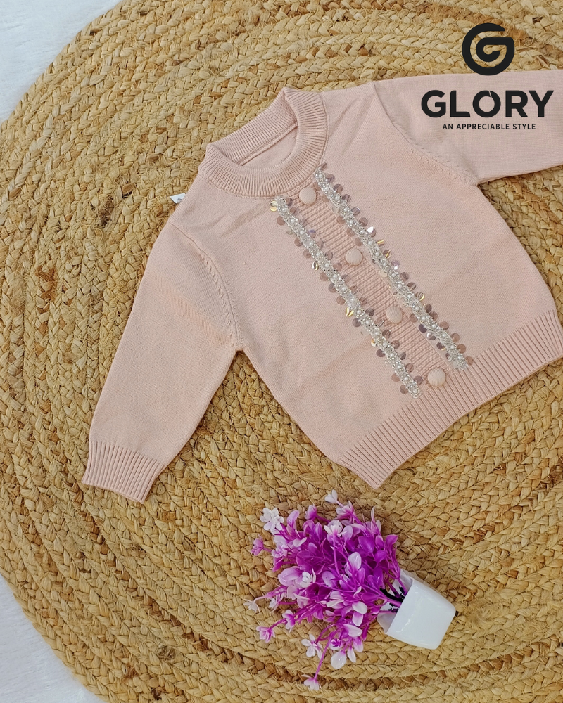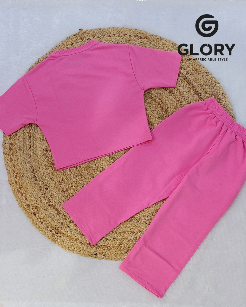 Girls Soft Rose Pink Cord Set With Elegant Sequence Work Top