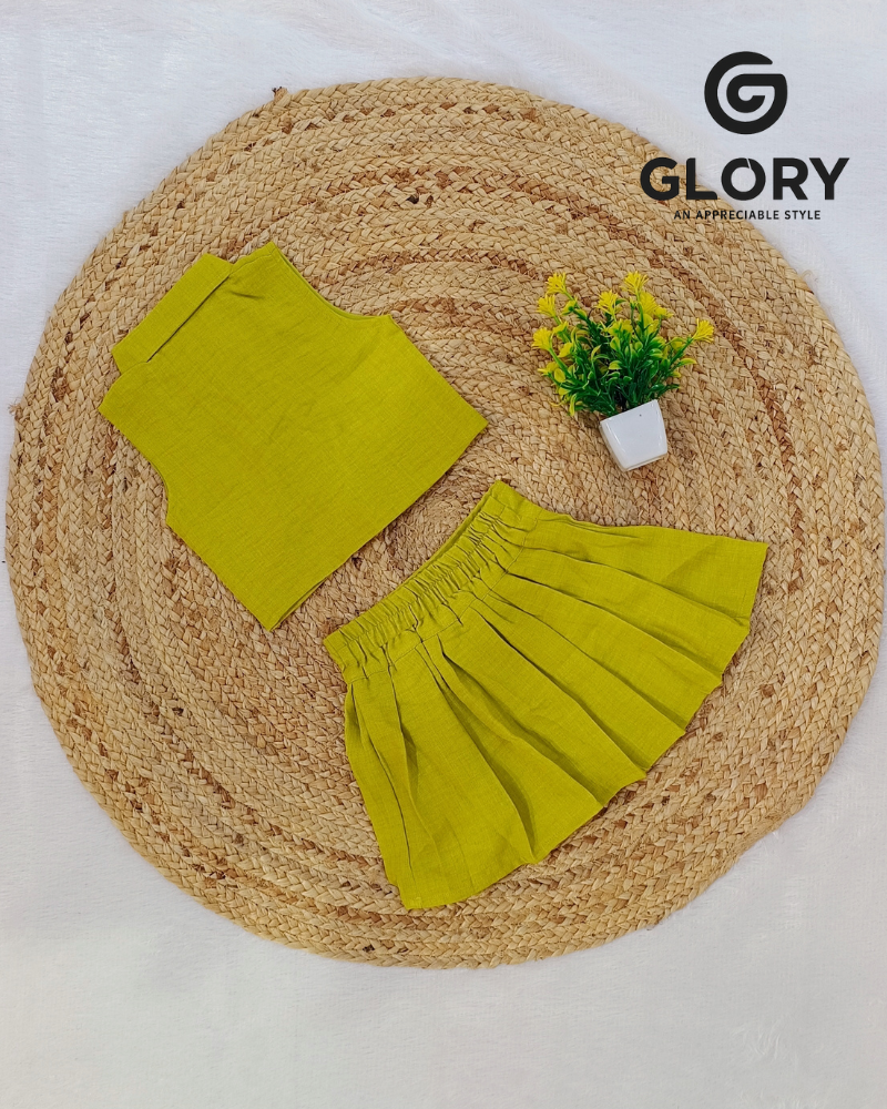 Girls Cream & Pistachio Cord Set With Hearty Buttons Top