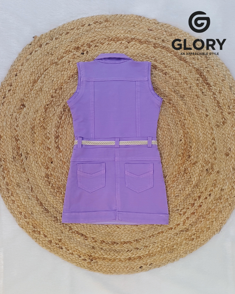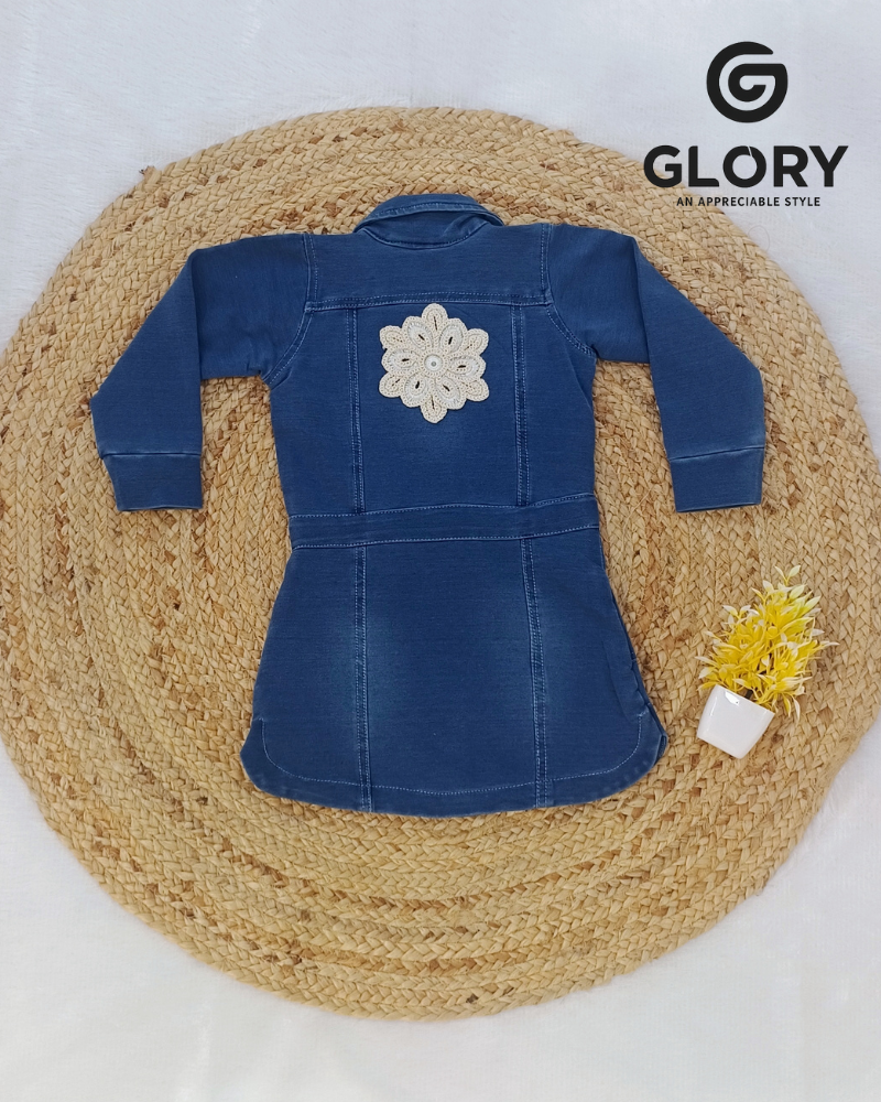 • Girls Denim Sleeveless One Piece With Flower Thread Work