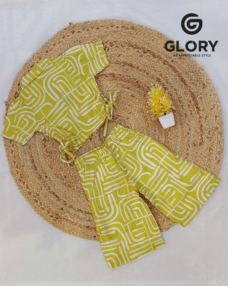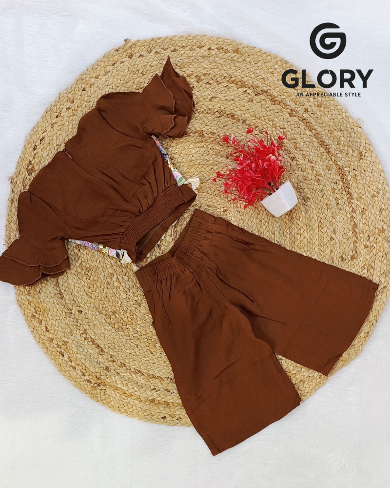 2 Piece Co-Ord Set With Beautiful Flower Petals Top & Six Pocket Bottom