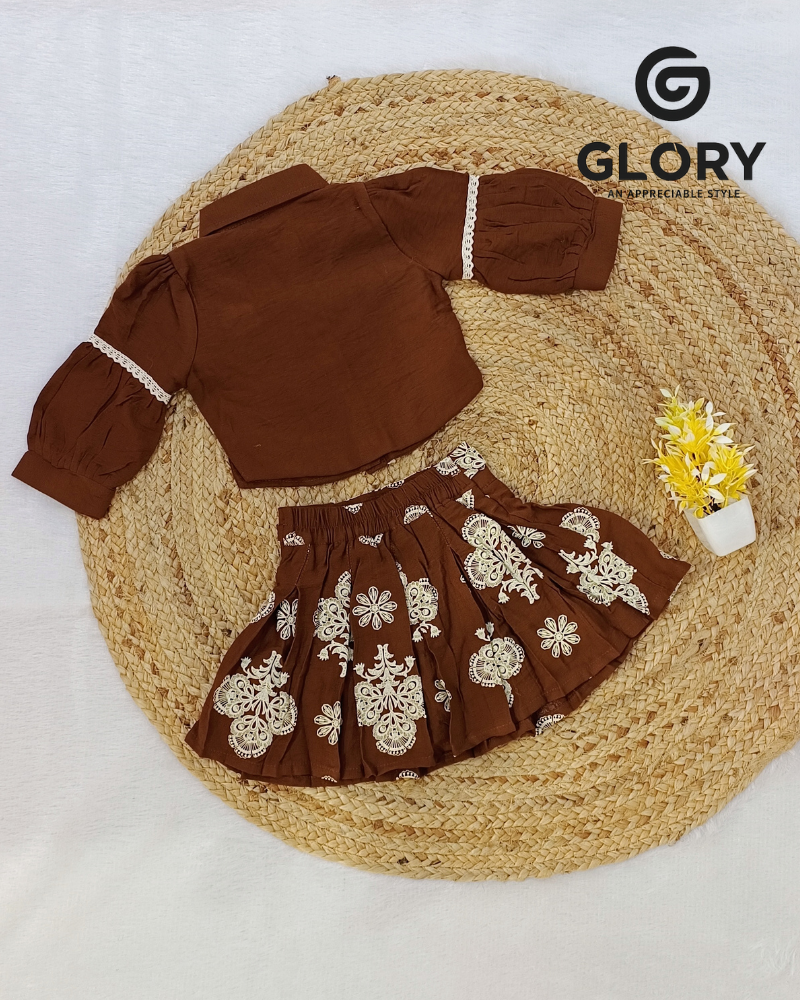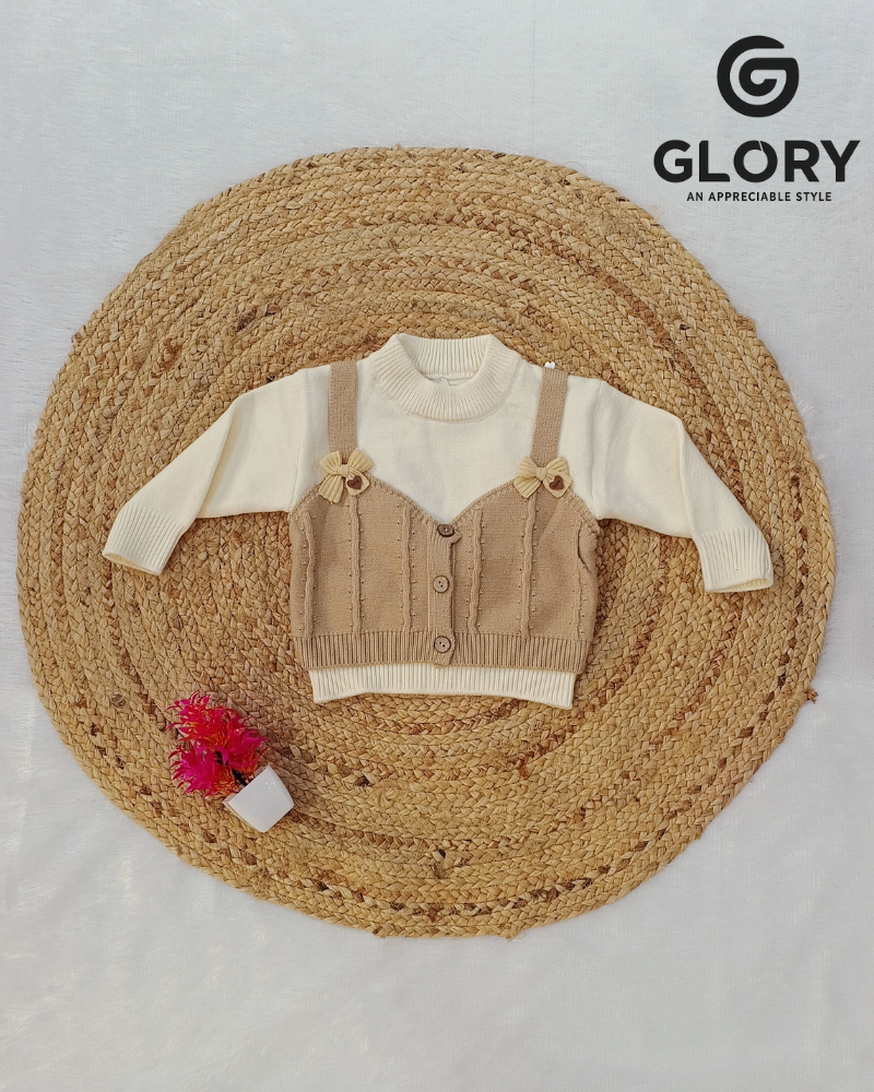 Girls Cream & Jute Brown Cord Set