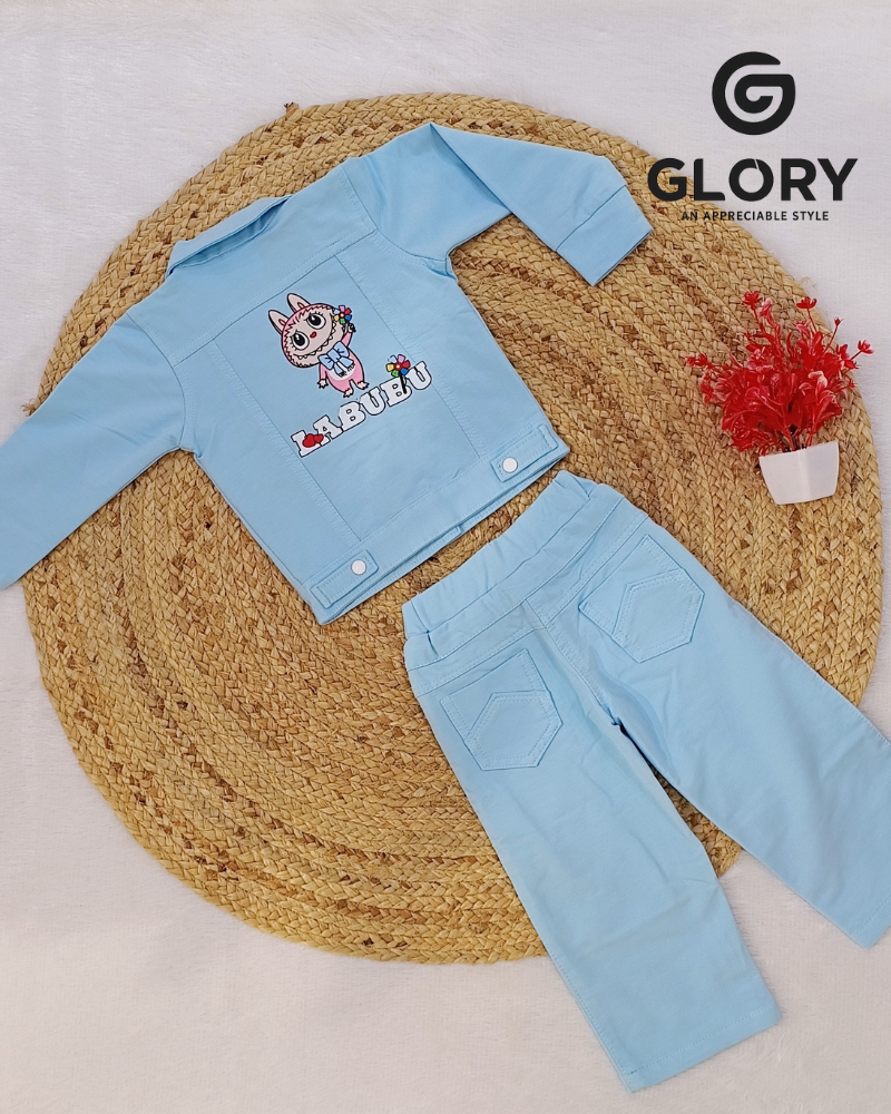 • Girls Candy Blue Cord Set With LABUBU Patches &  Back Print