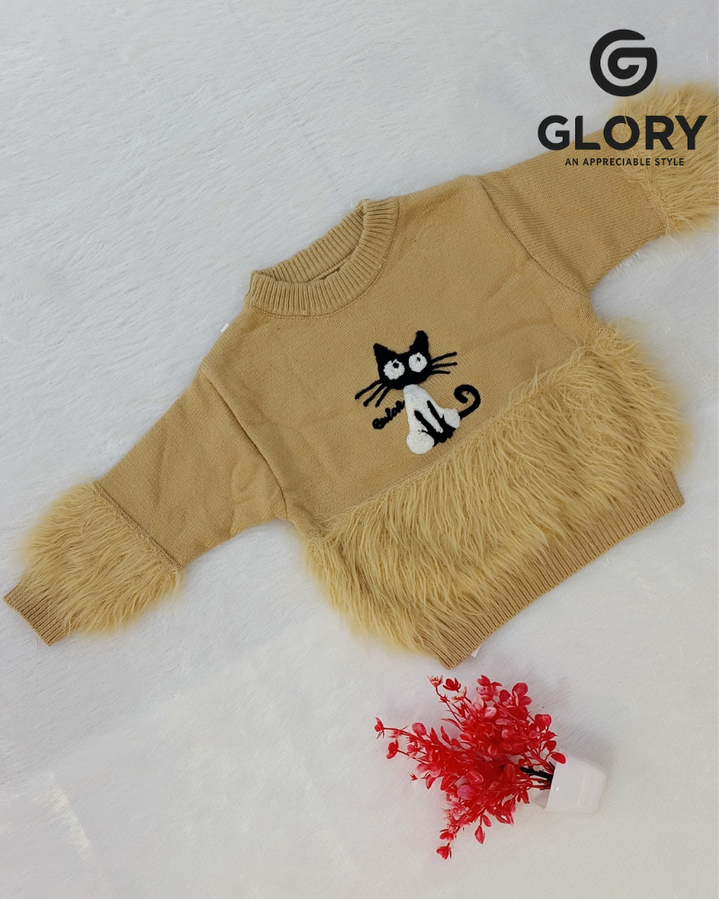 Girls Camel Brown Cord Set With Kitty Patch & Furry Top