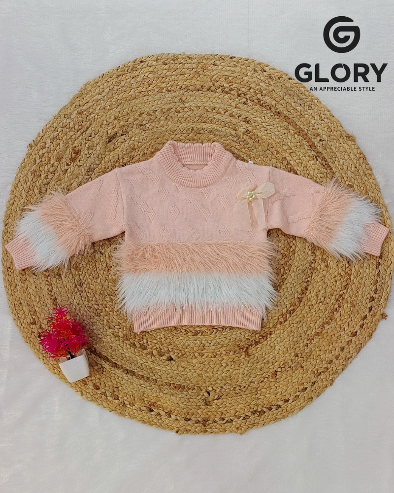 • Girls Peach Blush Cord Set With Glittery Fur Top